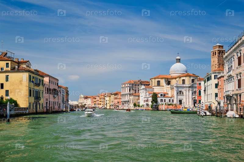 Лодки и гондолы на Большом канале в день, Венеция, Италия