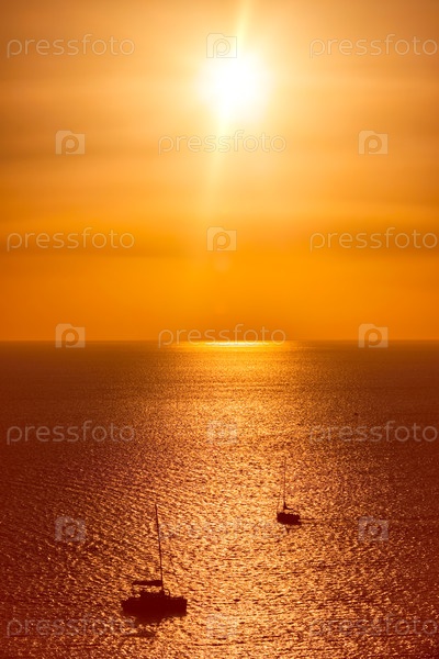 Силуэты яхт в Эгейском море на закате