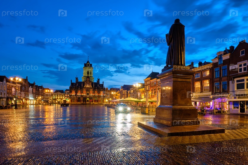 Рынок Делфтской рыночной площади (Delft Market Square Market) вечером