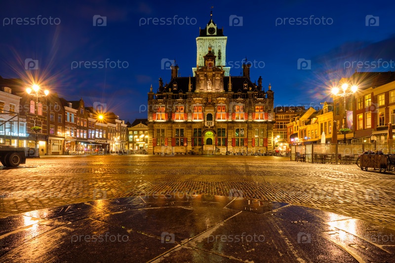 Рынок Делфтской рыночной площади (Delft Market Square Market) вечером