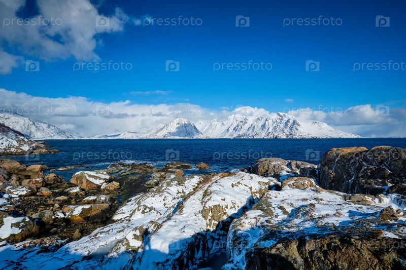 Лофотенские острова и Норвежское море зимой со снежными горами
