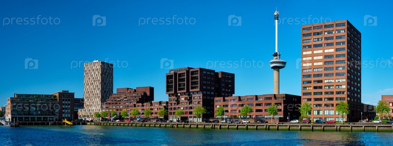 Панорама городского пейзажа Роттердама с смотровой башней Euromast и рекой Nieuwe Maas