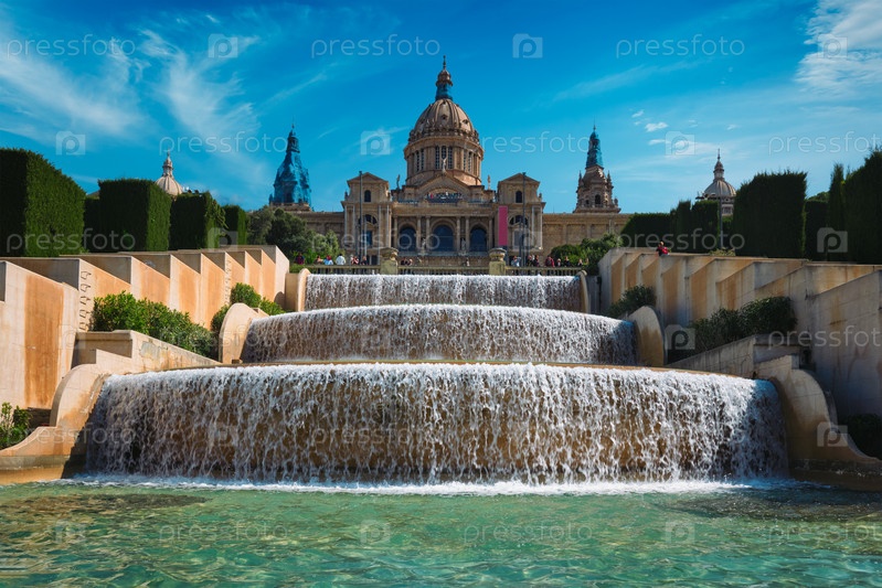 Волшебный фонтан Монжуика и Национального дворца.Барселона, Испания