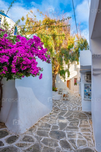 Живописная улица Наоузы на острове Парос, Греция
