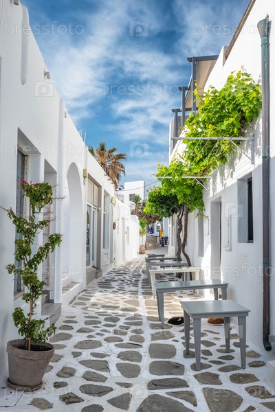 Живописная улица Наоузы на острове Парос, Греция