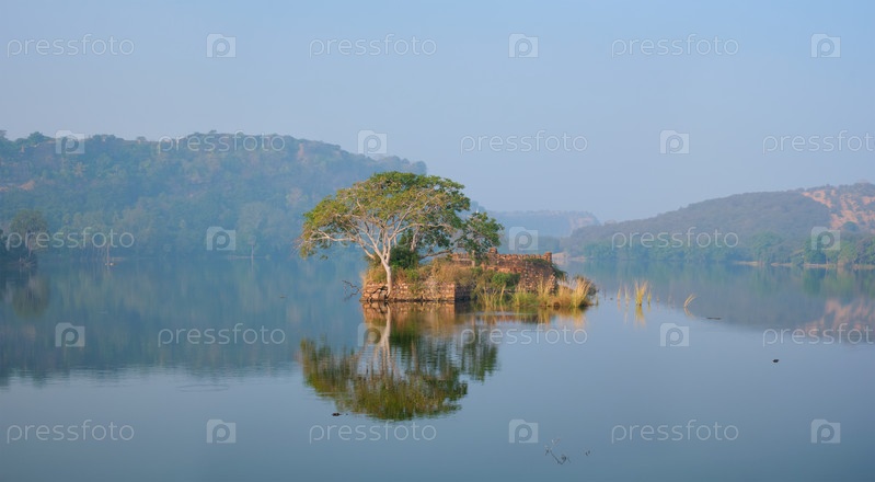 Серена утром в озере Падма Талао.Национальный парк Рантамбор, штат Раджастхан, Индия
