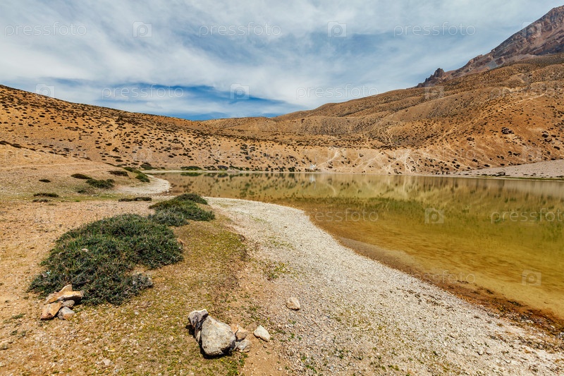 Гималаи - это горы, расположенные в горном озере Данкар. долина Спити, Химачал-Прадеш, Индия