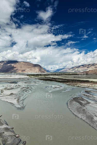 Ландшафт долины Нубра в Гималаях.Долина Нубра, Ладакх, Индия