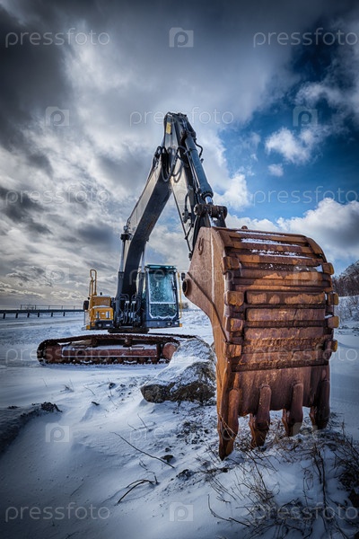 Старый экскаватор зимой