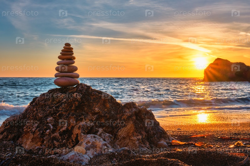 Концепция баланса и гармонии - каменная куча на пляже