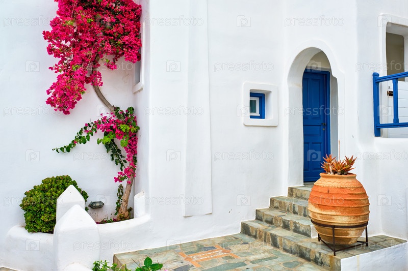 Живописная улица Наоузы на острове Парос, Греция