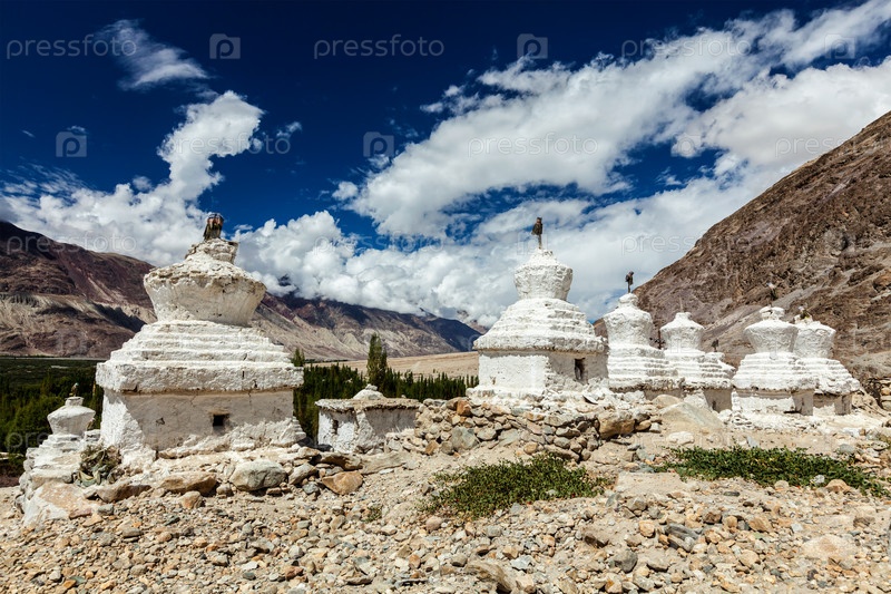 Обеленные рощи тибетских буддийских ступ Долина Нубра, Ладакх, Индия