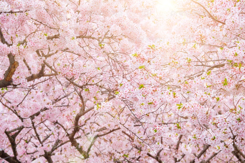 Сакура цветет на заднем плане весной, Южная Корея. с солнечными и линзовыми вспышками