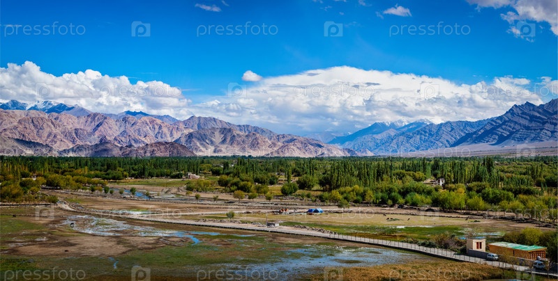 Панорама долины Инда с дворца Шей.Ладакх, Индия