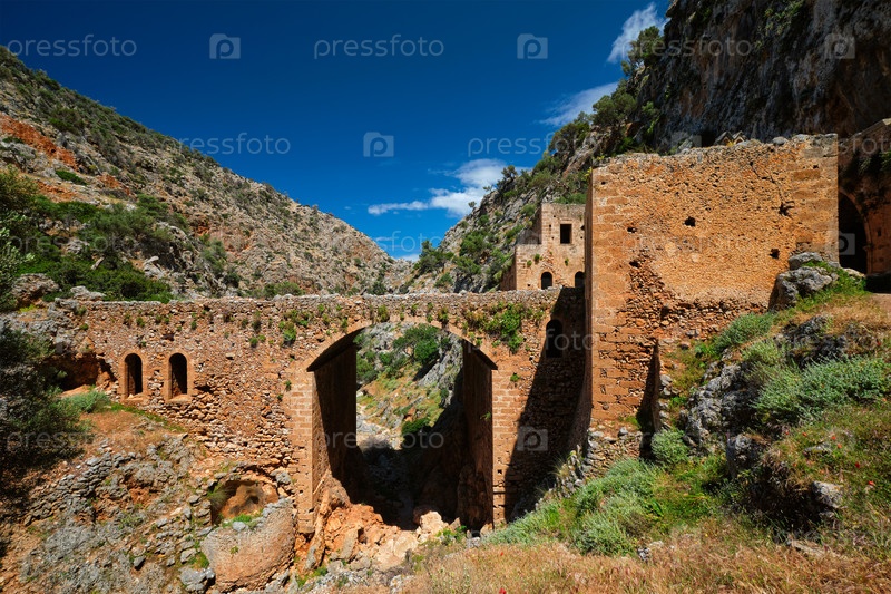 Руины заброшенной католической монастырской церкви в ущелье Аулаки, полуостров Акротири, регион Хания на острове Крит, Греция