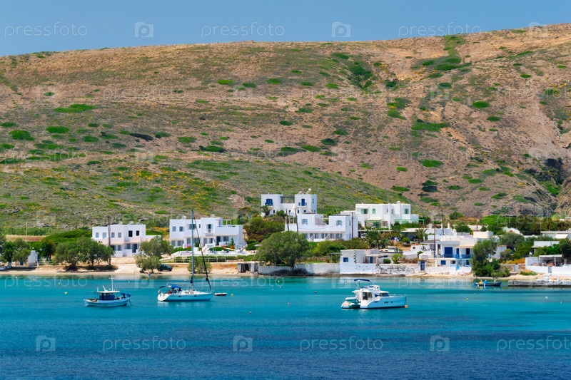 Греческая рыбацкая деревня с традиционными белыми домами на острове Милос