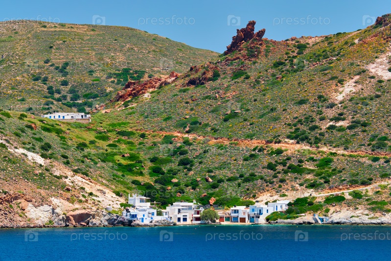 Греческая рыбацкая деревня с традиционными белыми домами на острове Милос