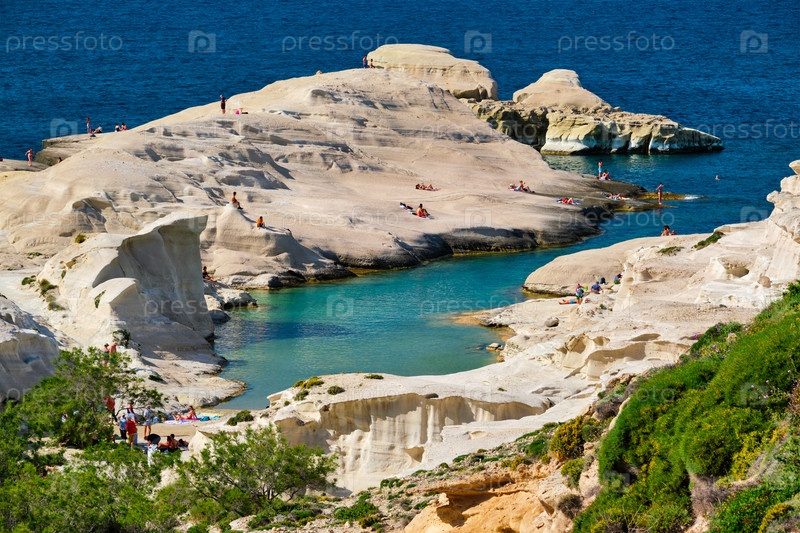 Знаменитый пляж Саранико на острове Милос в Греции
