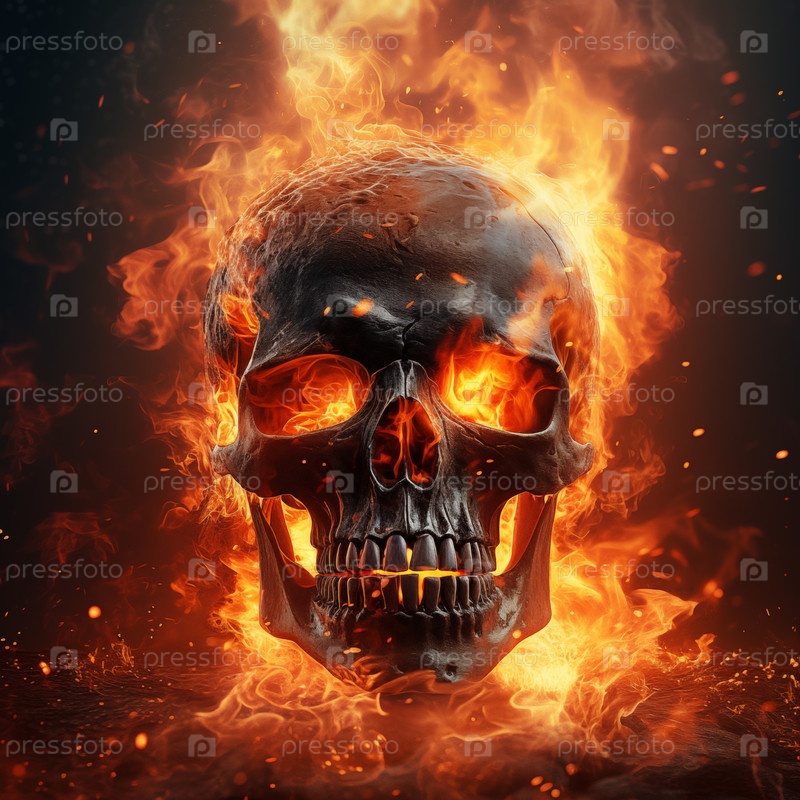 Ужасный и ужасный горящий череп на темном фоне. идеально подходит для Хэллоуина или фильмов ужасов
