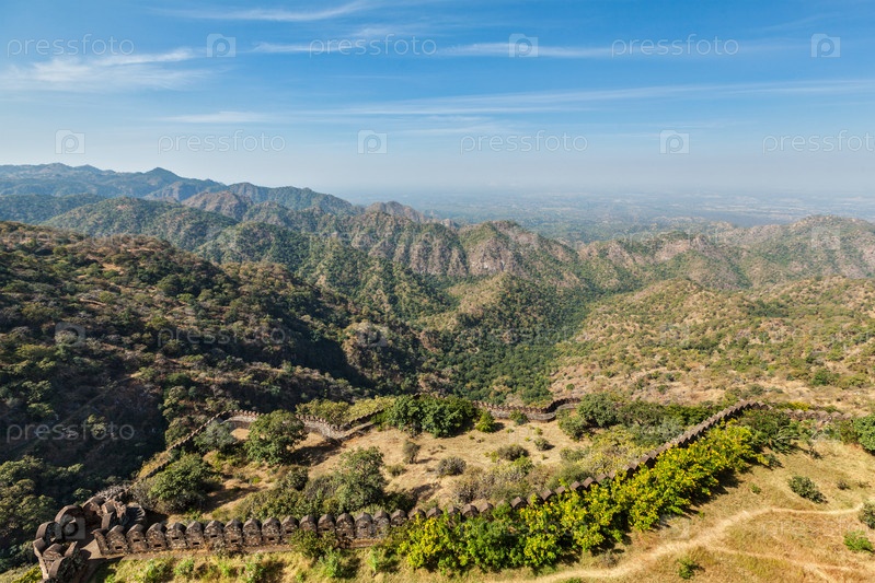 Вид на холмы, форт Кумбальгрх и укрепленные стены.Раджастхан, Индия