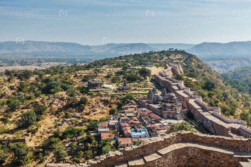 Храмы и дома внутри стен форта Кумбальгарх.Раджастхан, Индия