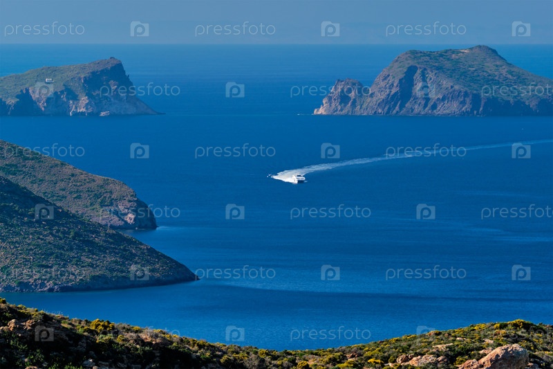 Катамаран высокоскоростной лодки в Эгейском море недалеко от острова Милос в Греции