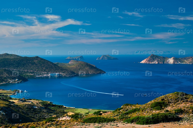 Эгейское море возле острова Милос с катамараном