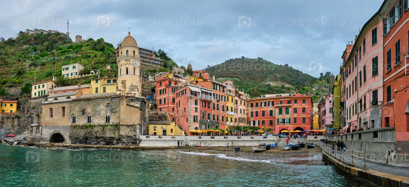 Панорама деревни Вернацца, популярного туристического направления в Национальном парке Цинк-Терре (Cinque Terre National Park), который является объектом Всемирного наследия ЮНЕСКО, Лигурия, Италия