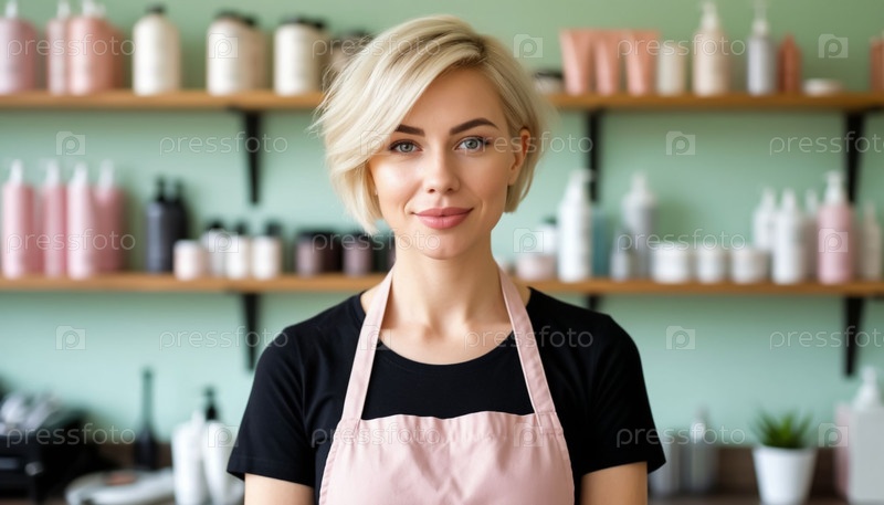 Женская парикмахерша в салоне красоты