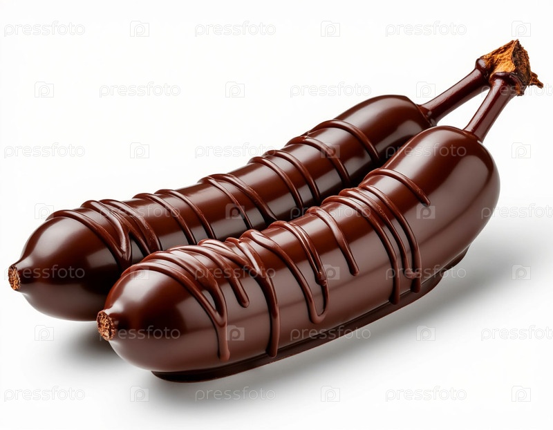 Бананы в шоколаде на белом фоне