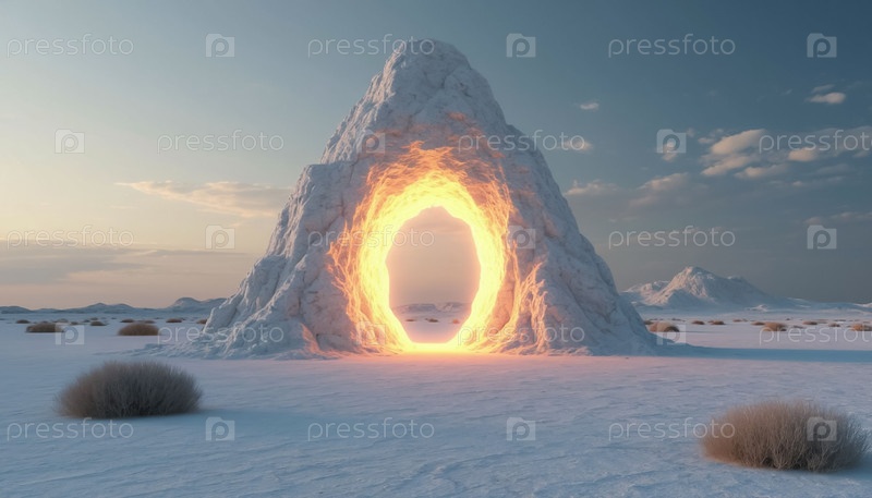 Светящийся портал посреди белой пустыни - футуристический пейзаж