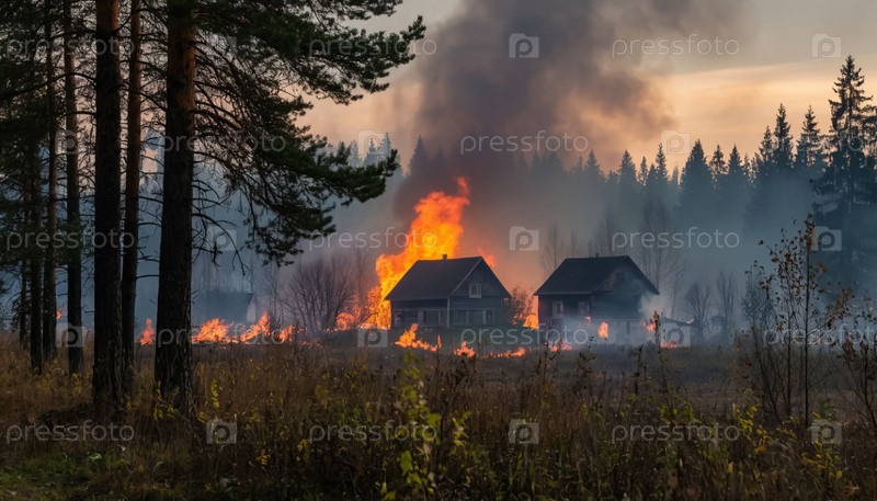 Лесные пожары в жаркое лето возле жилых деревень