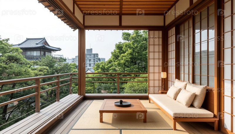 Балкон в доме в минималистическом японском стиле