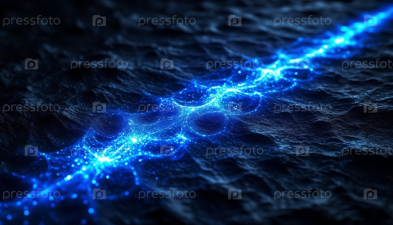Светящаяся синяя абстрактная форма на тёмнозернистом черно-синем фоне
