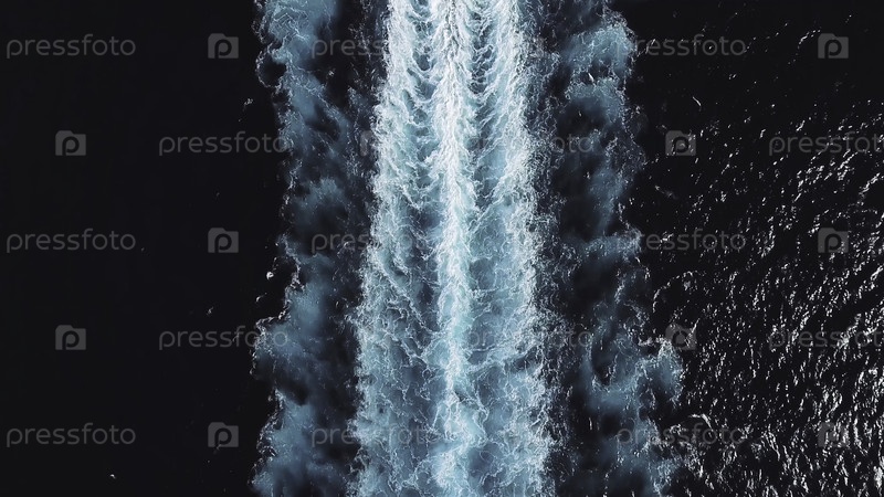Вид с высоты красивой рельсы на поверхности моря или океана позади скоростного круизного лайнера