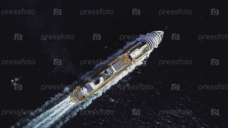 Вид на роскошный большой круизный корабль, плавающий на полной скорости в открытой воде, концепция роскошного отдыха