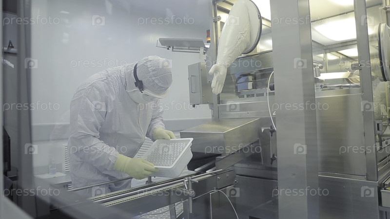 Фармацевтическая промышленность. Работник мужской фабрики проверяет качество упаковки таблеток на фармацевтической фабрике. Автоматическая лента для создания упаковки и заполнения лекарств. Контроль на медицинском заводе