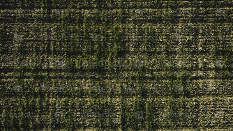 Вид с воздуха зеленых кукурузных полей, растущих рядами, концепция сельского хозяйства