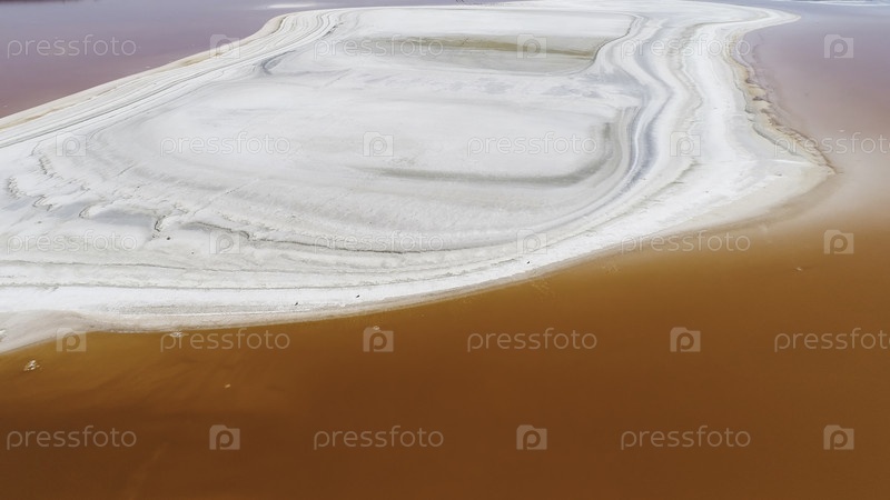 Впечатляющий природный пейзаж розового необычного озера с белыми солевыми берегами