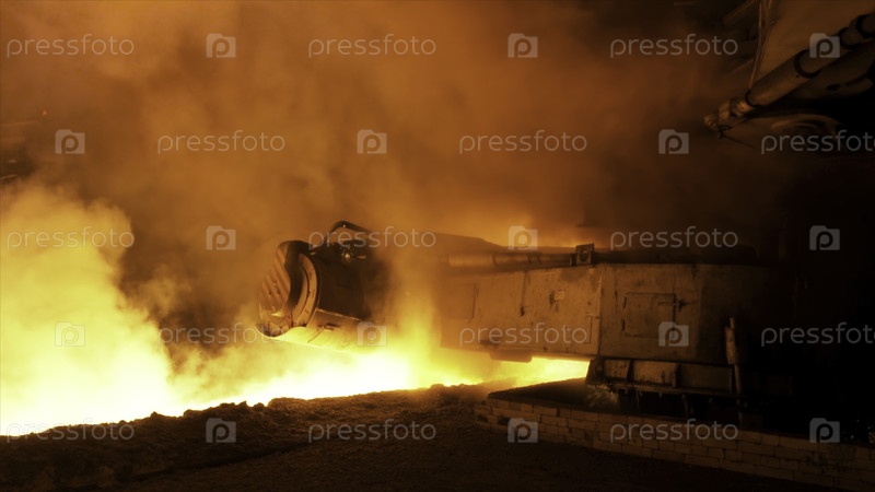 Процесс разлива паровых клубов из расплавленной стали на металлургическом заводе
