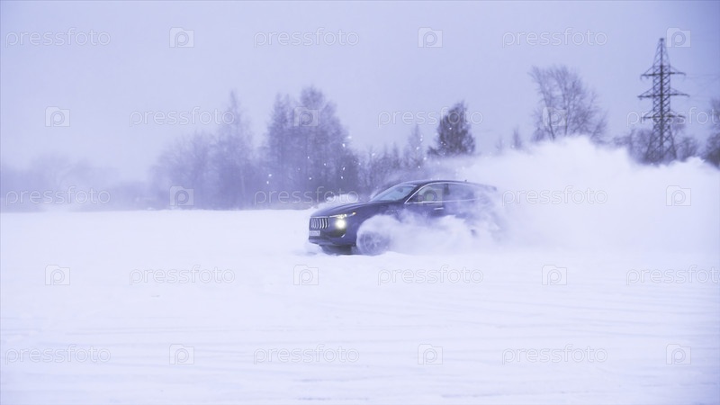 Автомобиль демонстрирует способность ездить по заснеженной дороге, дрейфовать и маневрировать