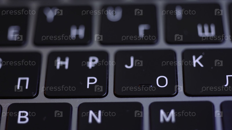 Закройте клавиатуру ноутбука в черно-белом цвете. продолжайте. концепция современных компьютерных технологий, лаптопная клавиатура с светящимися буквами