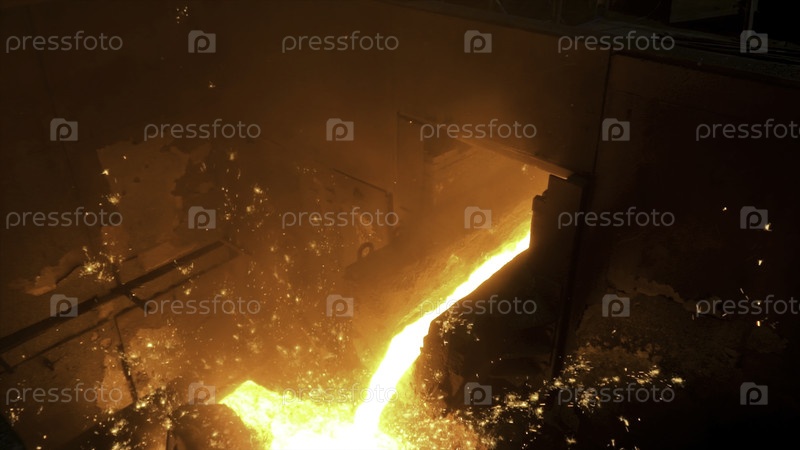 Закрытие для расплавленного металла, залитого из кувшина литья на литейной фабрике. резервные кадры. Литье металлов, металлургическое производство в горячем цехе завода