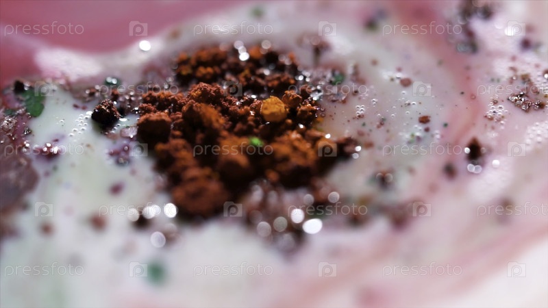 Фантастическая красочная текстура пятен чернил в хаотическом движении на белом фоне.Абстрактные цветовые розы, красные цвета текут в белой жидкой субстанции