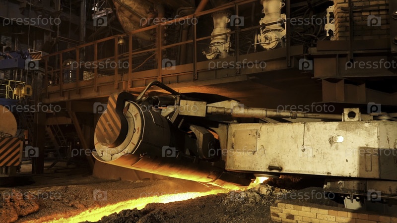Производство стали в электрической печи, которая медленно движется к камере