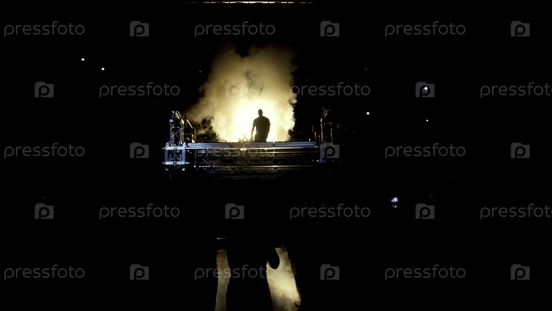 Бойцы в темноте выходят на ринг. Фанаты фона, ММА. Презентация бойца перед боем. Тень бойца и дым с огнями