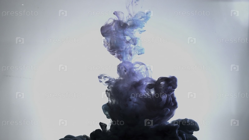 Дымчатый синий и розовый чернила в движении на воде. абстрактный рисунок с голубыми чернилами в воде. падение синего дыма