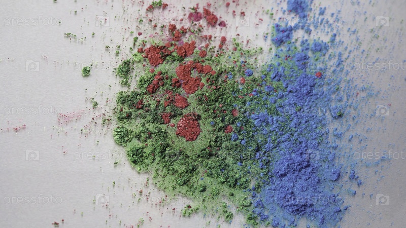Красивый радужный фон из зеленого, синего и розового порошка в белой жидкости