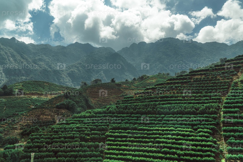 Почувствуйте захватывающий вид на террасовые поля, высокие горы и динамичное небо для незабываемого приключения