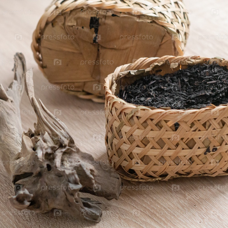 Красивая коллекция натуральных сушеных трав, представленная в ручной декоративной корзине